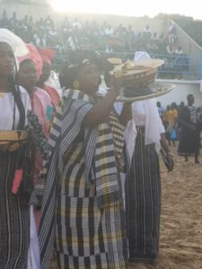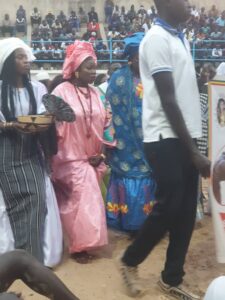 La particularité des galas de Joe Mbassa, c’est qu’ils ont une bonne dose de culture. Ça a encore été le cas ce dimanche. Entre les pagnes traditionnels, les petites calebasses construites à l’occasion, les perles dites pémé en Sérère, du mil, du maïs, rien n’a été laissé au hasard.