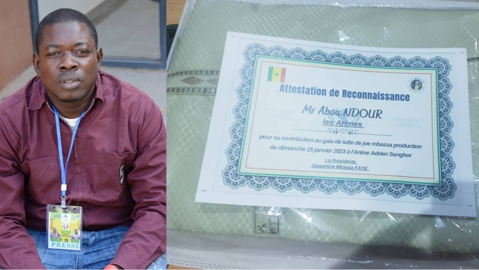 En marge de son gala de ce dimanche 15 janvier 2023, à Adrien Senghor, la promotrice Joe Mbassa Faye a honoré un certain nombre d’acteurs de la lutte. Parmi eux, votre fidèle serviteur qui a reçu un très beau boubou de Gadio collection, en plus d’un diplôme de reconnaissance. Un honneur qu’il rend, à son tour, à tout le groupe Les Arènes.